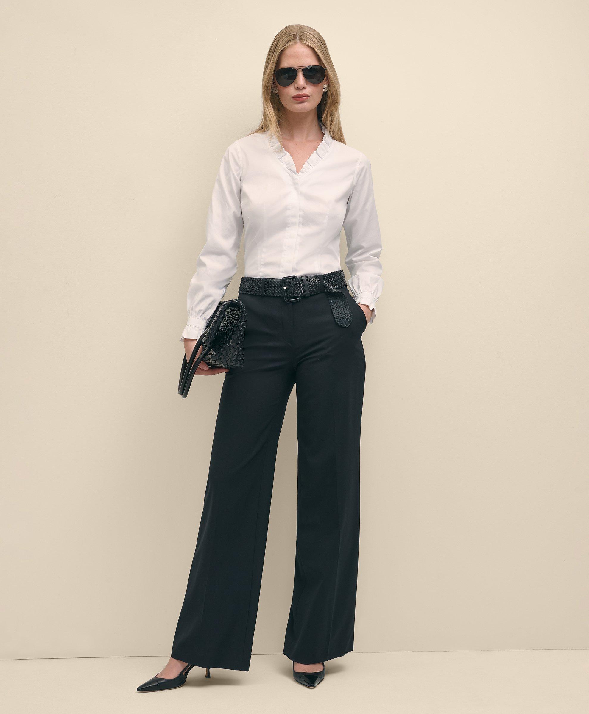 Non Iron Stretch Supima Cotton Ruffle Pinpoint Oxford Dress Shirt